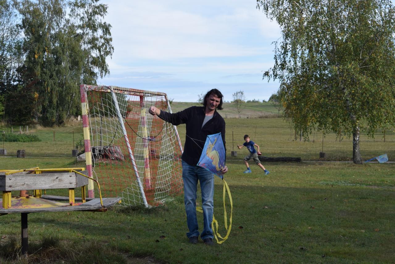 Tradiční pouštění draků na kopci a malé vyrábění vlastních draků.