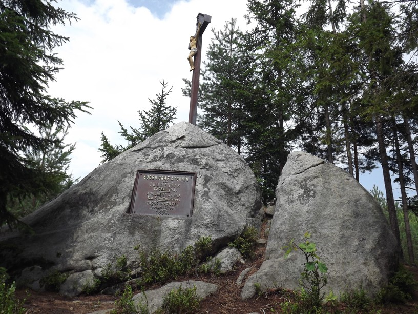 Tento železný kříž je z roku 1854 a je umístěný na vrcholu žulového skaliska uprostřed lesů, 4 kilometry od Jemčiny směrem na sever.Pod křížem je ve skále pamětní deska, která připomíná stavitele Adalberta Lanna, který se zasloužil o splavnění nedalekého úseku toku řeky Nežárky. Tímto počinem došlo ke snížení nezaměstnanosti v kraji, a proto má Lanna v těchto končinách postaven pomník.